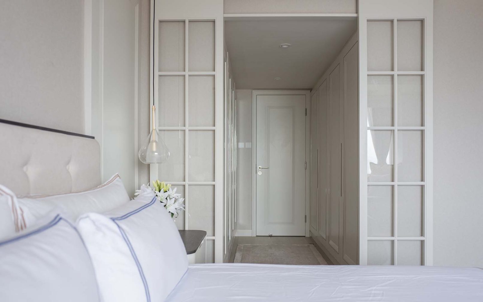 The project is located in a residence of Hong Kong middle level, with a panoramic view of the Victoria Harbour. Client is a foreign couple who hopes to create a modern, classical and sophisticated interior. The style of interior is dominated by white main color, with decorative lines and furniture to create a luxurious vibe.
