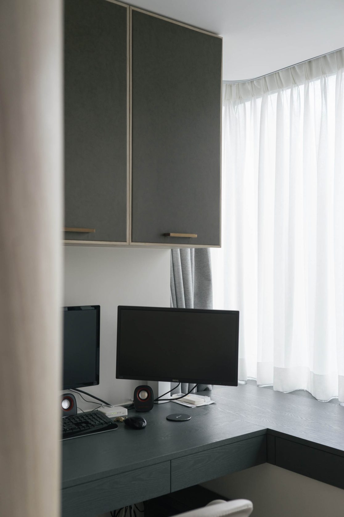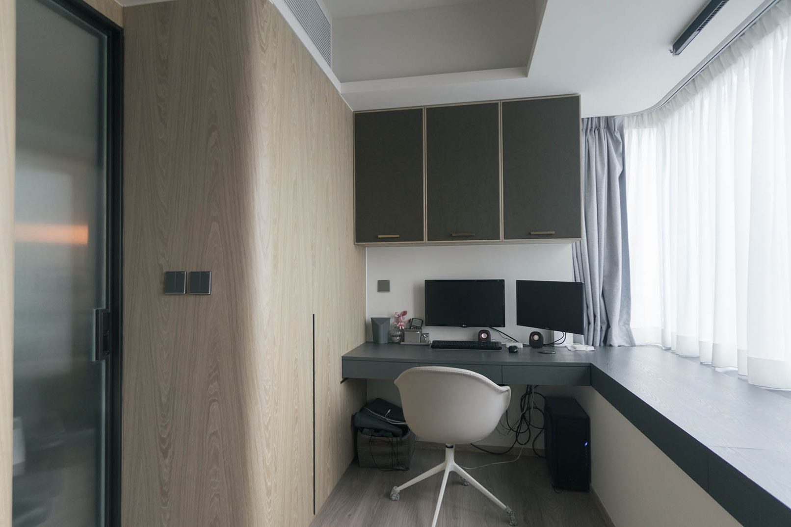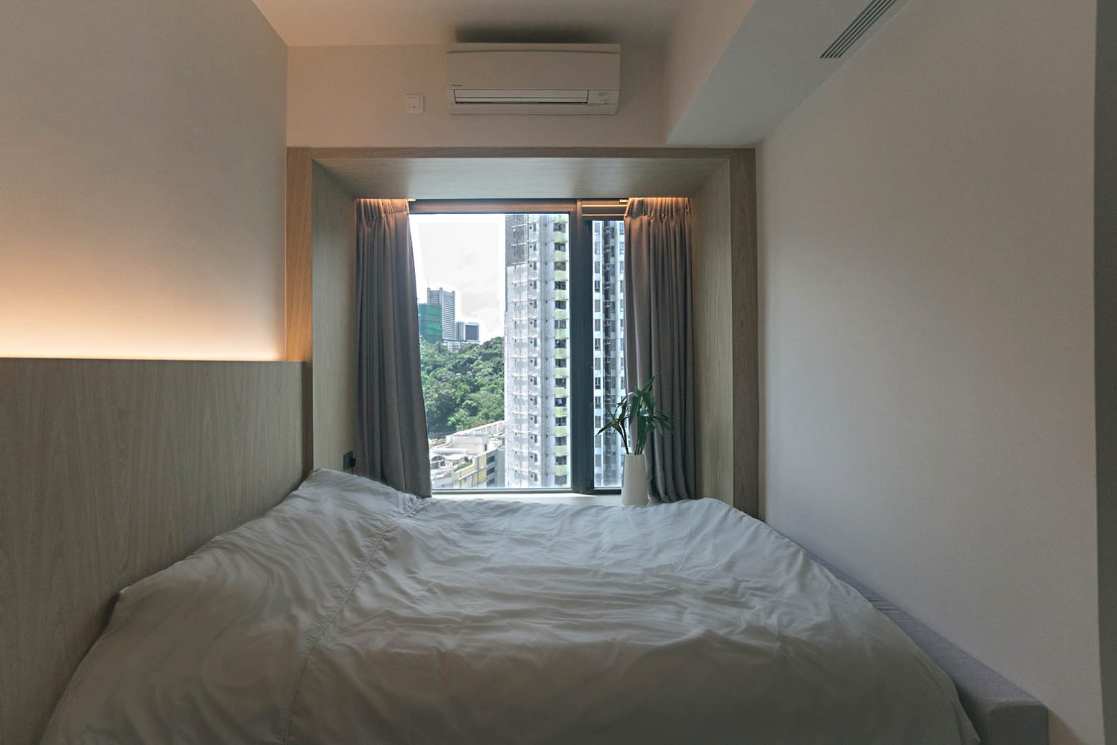 Located in the heart of Kennedy Town, this 650 square foot residence was recently redesigned to reflect a modern, minimalist aesthetic. Originally a three-bedroom apartment, the young couple who own the space decided to knock down the wall separating two of the rooms and create a versatile space that could be used as a home office, library, and walk-in closet.